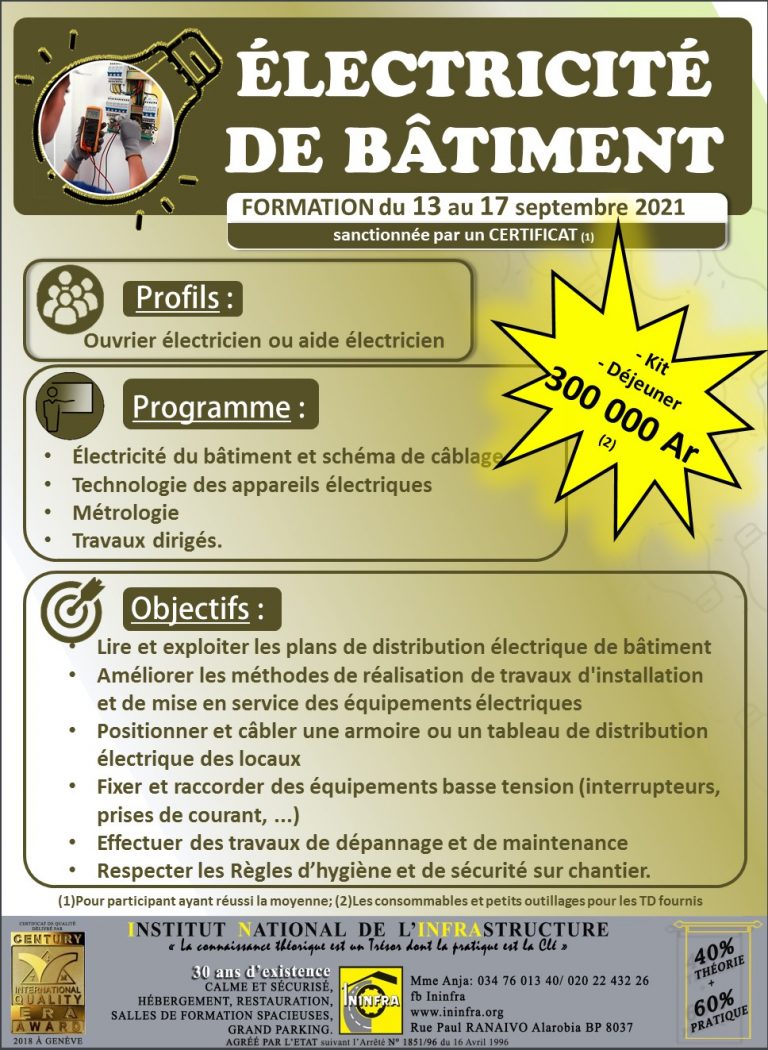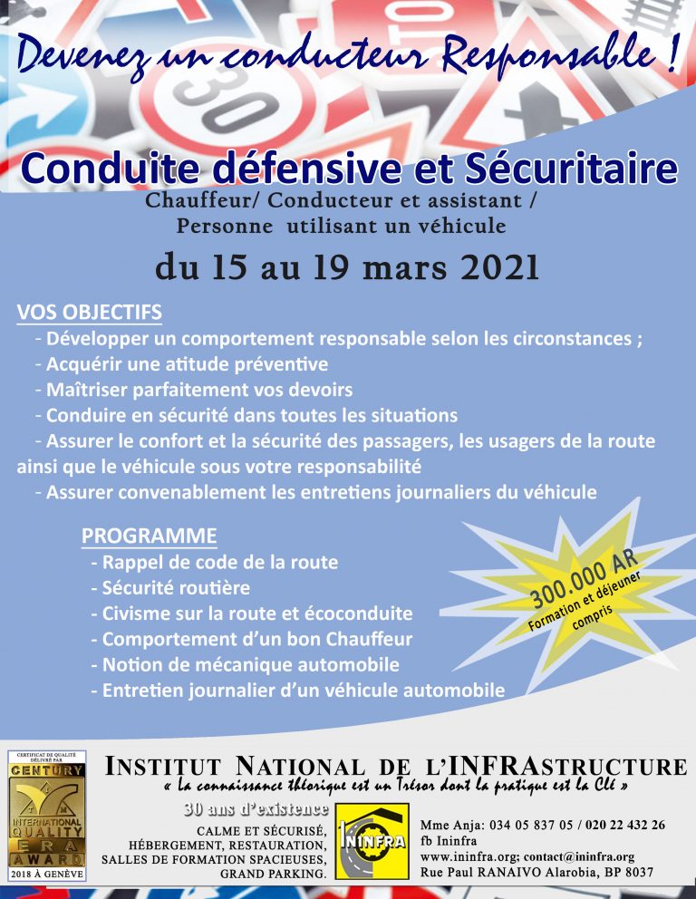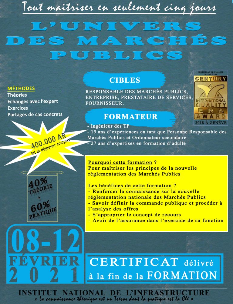 Calendrier de formation actualisé