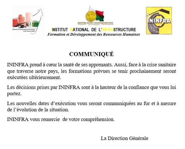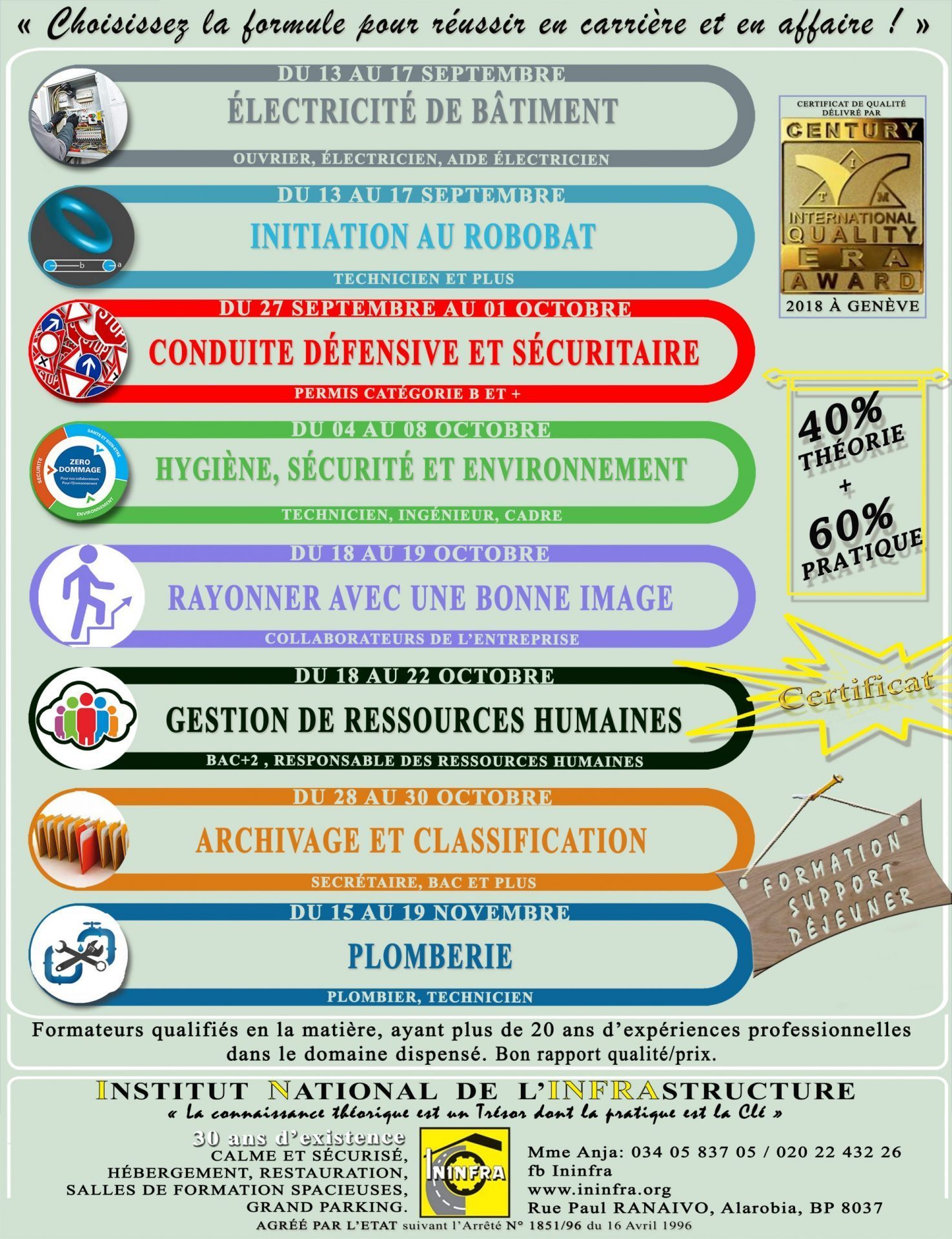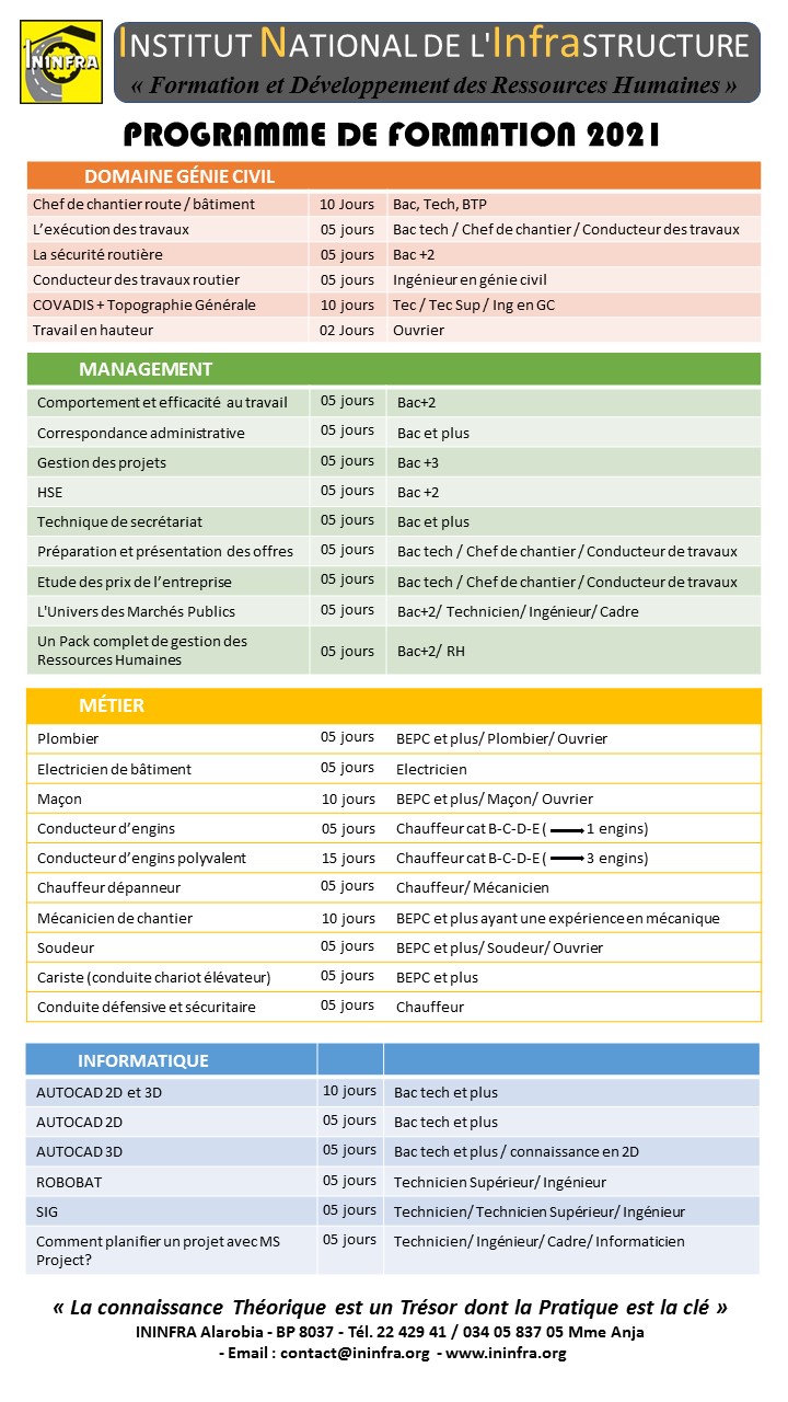 Calendrier de formation actualisé